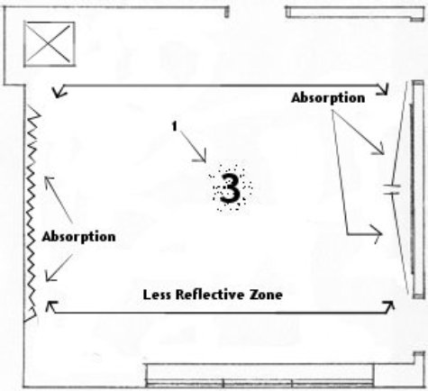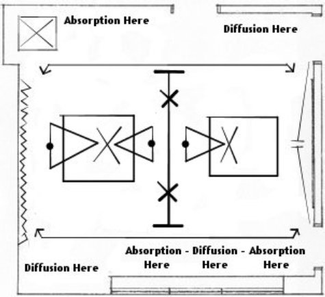 Seeing as how a square room is the worst – we will deal with a square room, but realize that the following concepts and solutions can be applied to any shape room. In theory, the more odd the shape of the room, the easier it is to treat.